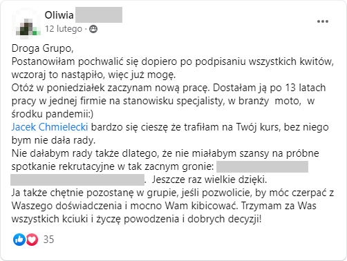 Poznaj opinie osób, które tak jak Ty, straciły pracę lub chciały ją zmienić i zastanawiały się, czy uczyć się ode mnie: